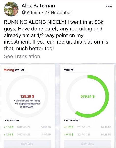 會員投資的每一筆資金都會投入礦場挖礦獲利